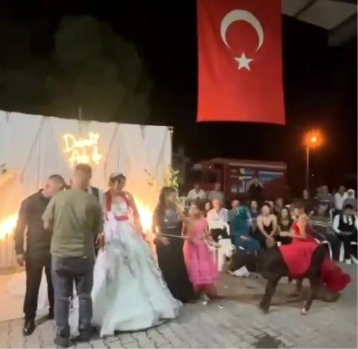 Damat Ramazan Karadağ’a eniştesi Birol Günay tarafından düğünde buzağı armağan edildi. Altın, bilezik, para derken armağan listesine buzağı da eklenince davetliler büyük şaşkınlık yaşadı. Gelin ve damat, bu değişik armağan karşısında hem kahkaha attı hem de memnunluklarını gizleyemedi.